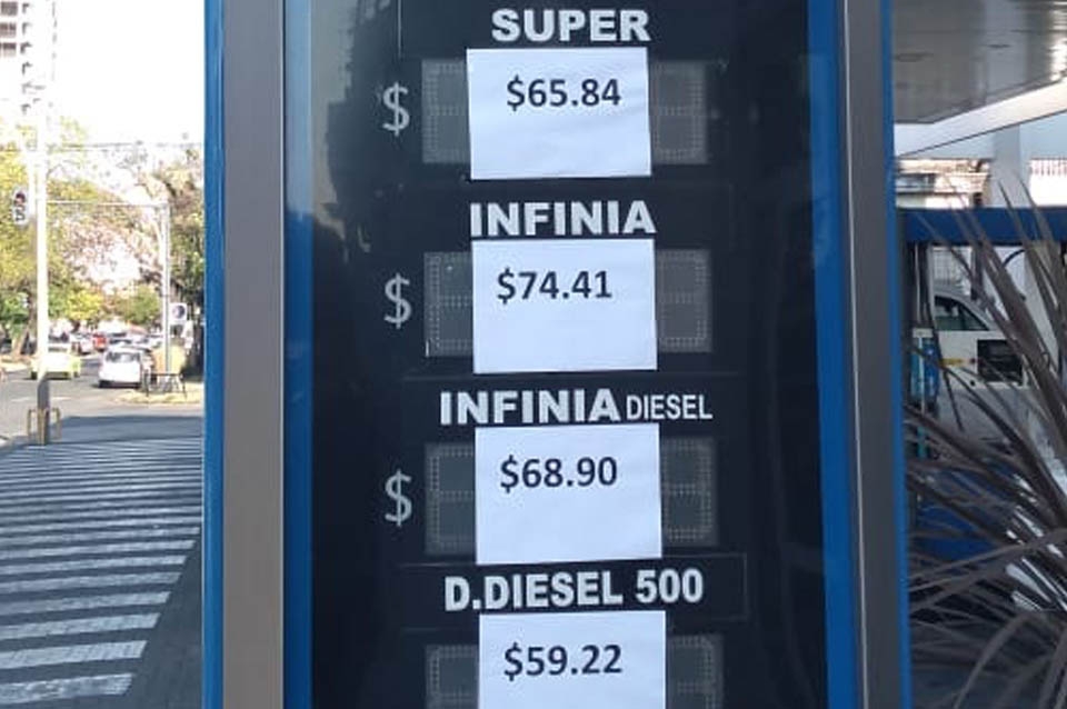 Por lo tanto, los precios quedaron de la siguiente manera: la nafta súper $65.840, la diésel común 59.220, la infinia nafta 74.410 y la infinia diésel 68.900.