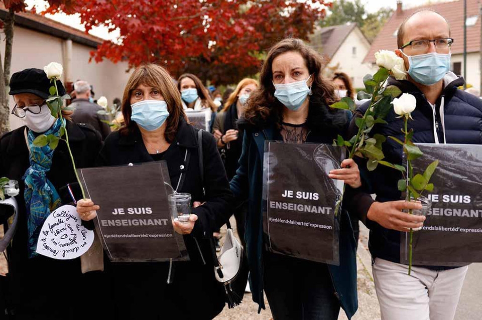 El presidente, Emmanuel Macron, acudió inmediatamente al lugar del asesinato y pidió a "toda la nación" que se uniera en torno a los profesores para "protegerlos y defenderlos".