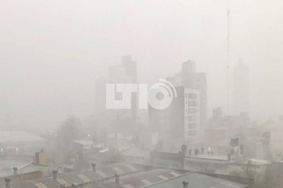 La tormenta se adelantó y la tarde en la ciudad de volvió gris, el cielo se cubrió y luego de la caída de granizo, que no alcanzó a provocar daños, comenzó a llover. También se percibieron fuertes ráfagas de viento.