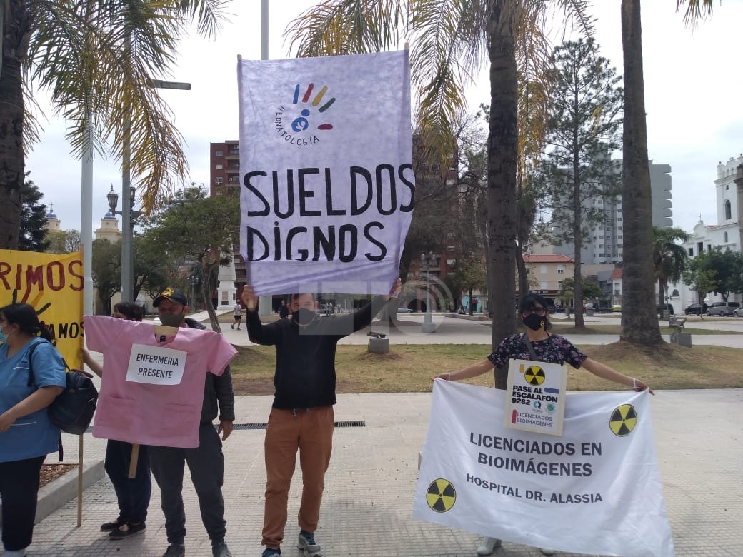 Personal no médico de distintos efectores de Salud se concentró hoy en Plaza 25 de Mayo para reclamar un aumento de salarios y mejores condiciones laborales.