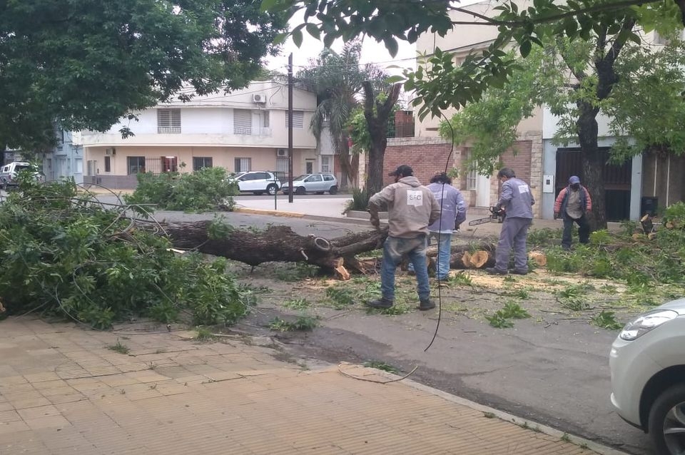 A partir de la tormenta que se desató el lunes por la tarde y que continuó el martes hasta cerca del mediodía se registró una gran cantidad de árboles caídos y de postes de alumbrado dañados. A través del sistema de Atención Ciudadana de la Municipalidad se recibieron 115 reclamos de este tipo y otros 47 fueron relevados por personal propio.