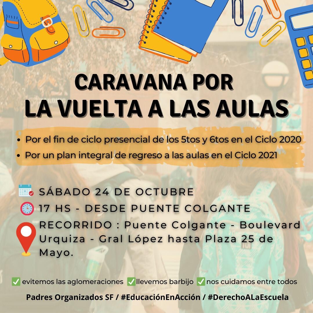 Por todo esto, y teniendo en cuenta la situación epidemiológica, organizaron una caravana que saldrá desde el puente colgante, en los autos con pancartas y globos. El recorrido será Bulevar, hasta Urquiza, luego General López y así llegar hasta la Plaza 25 de Mayo. Será este sábado 24 de octubre a las 17 hs.