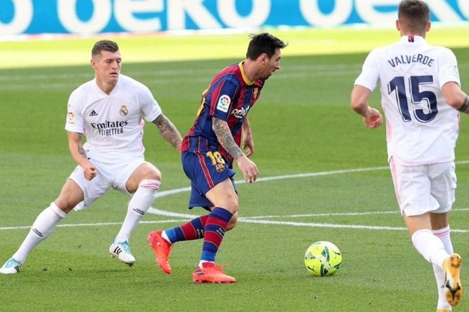 Real Madrid venció hoy a Barcelona por 3 a 1 como visitante en el clásico español, con goles de Federico Valverde (4m. PT), de Sergio Ramos (17m. ST), de penal, y Luka Moodric (44m. ST) en el ganador y de Anssumane Fati (8m. PT) en el perdedor, por la séptima fecha de la liga.