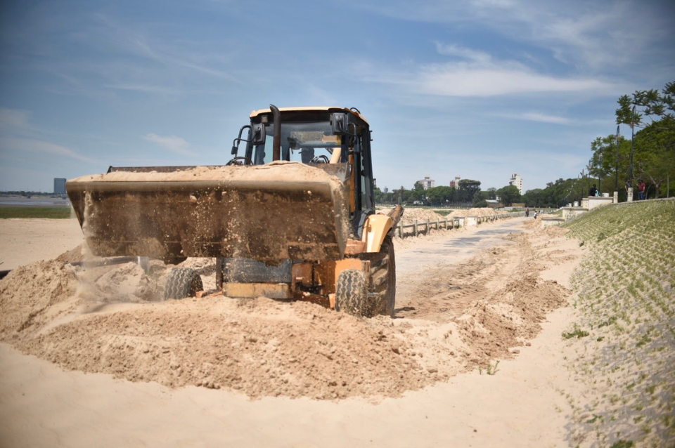 En esta línea, una retropala trabaja en el juntado de la arena que está en el camino bajo que tenía varios metros cúbicos y una parte será trasladada hasta el Parque del Sur porque -en forma paralela- se realizan obras en ese espacio verde de la ciudad. Máquinas más grandes acomodarán la arena hasta llegar a la zona del agua.