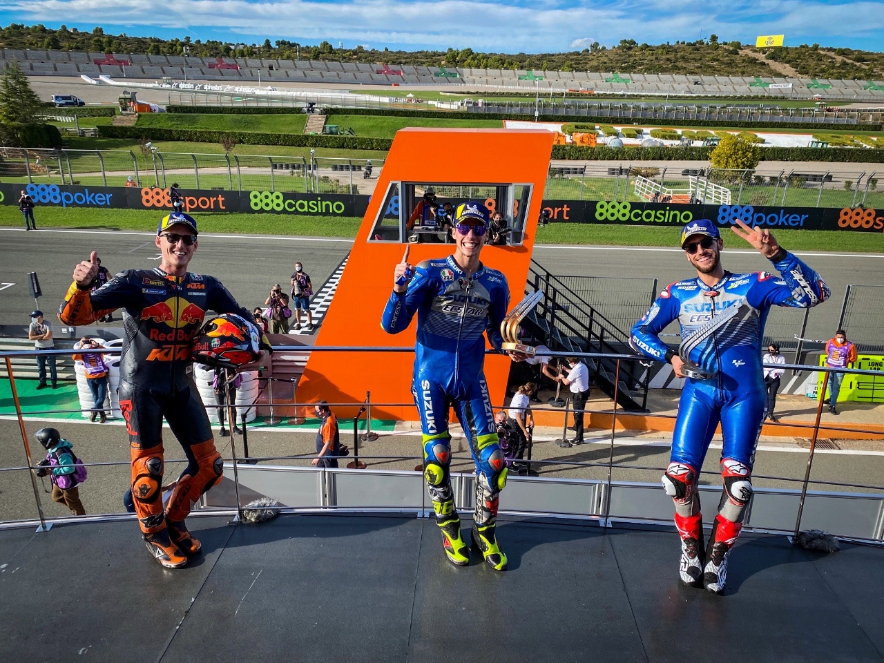 El gran vencedor de la jornada ha sido Joan Mir, que ha protagonizado una carrera monumental, sin errores, de estrategia perfecta, para firmar su primer triunfo en la categoría reina, un premio que había rozado en diversas ocasiones y que finalmente se ha materializado en el trazado de Valencia tras 27 vueltas repletas de giros sorprendentes. El éxito de Mir le convierte en el noveno piloto que gana un Gran Premio en el imprevisible curso 2020. Pol Espargaró (Red Bull KTM Factory Racing) ha redondeado el éxito de los pilotos locales al lograr la tercera posición y sumar su cuarto podio del año.