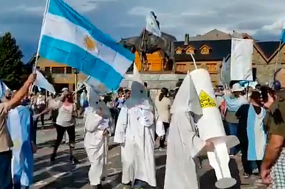 Manifestantes en Bariloche se vistieron con los clásicos trajes del Ku Klux Klan y generaron un fuerte rechazo en las redes sociales, durante una de las manifestaciones opositoras que tuvieron lugar este domingo en algunas ciudades del país.