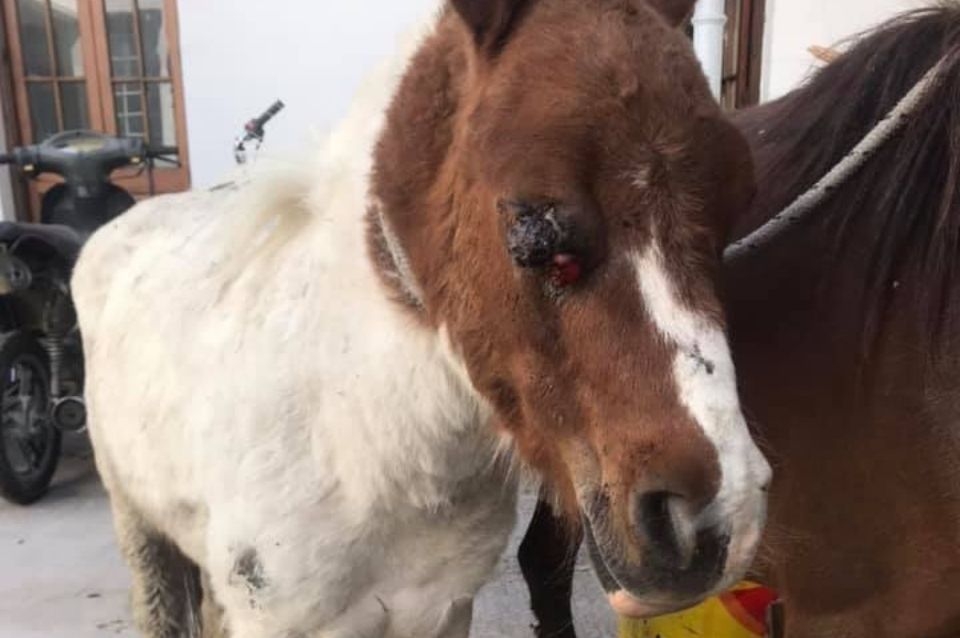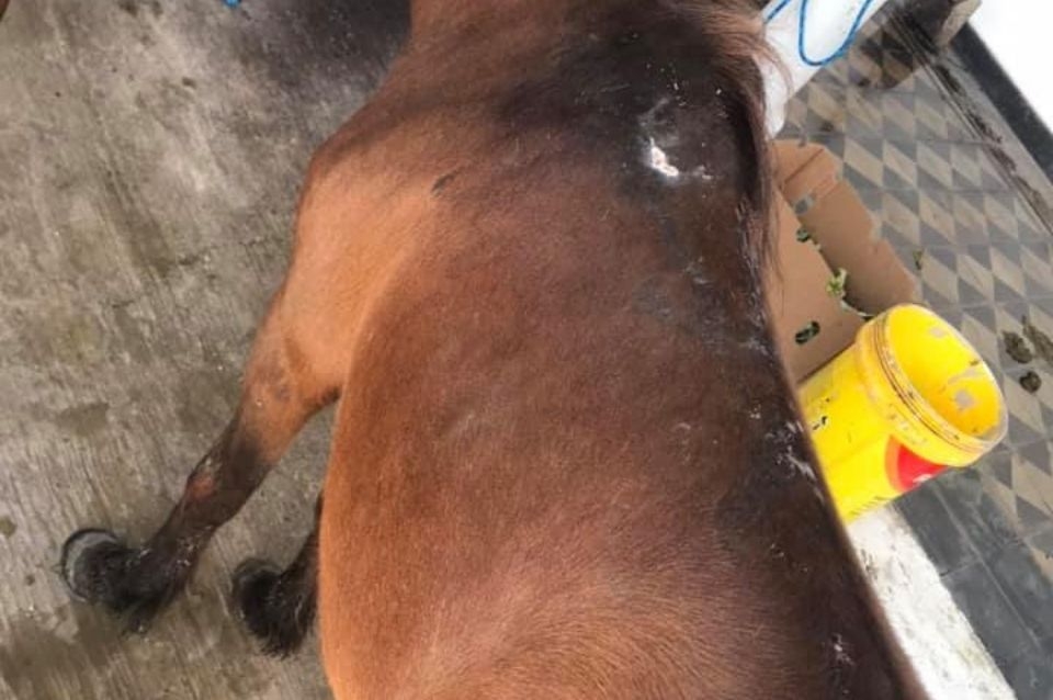 Mientras que la yegua, Simona, tiene heridas que parecen ser quemaduras con agua o aceite.
