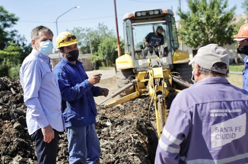 Las máquinas realizan excavaciones para luego hacer el cordón cuneta y más tarde el pavimento; otras, hacen las zanjas que contendrán los caños para el tendido de la red de agua potable. Este trabajo forma parte de las obras que el municipio lleva adelante en barrio Villa hipódromo, al noroeste de la ciudad de Santa Fe.