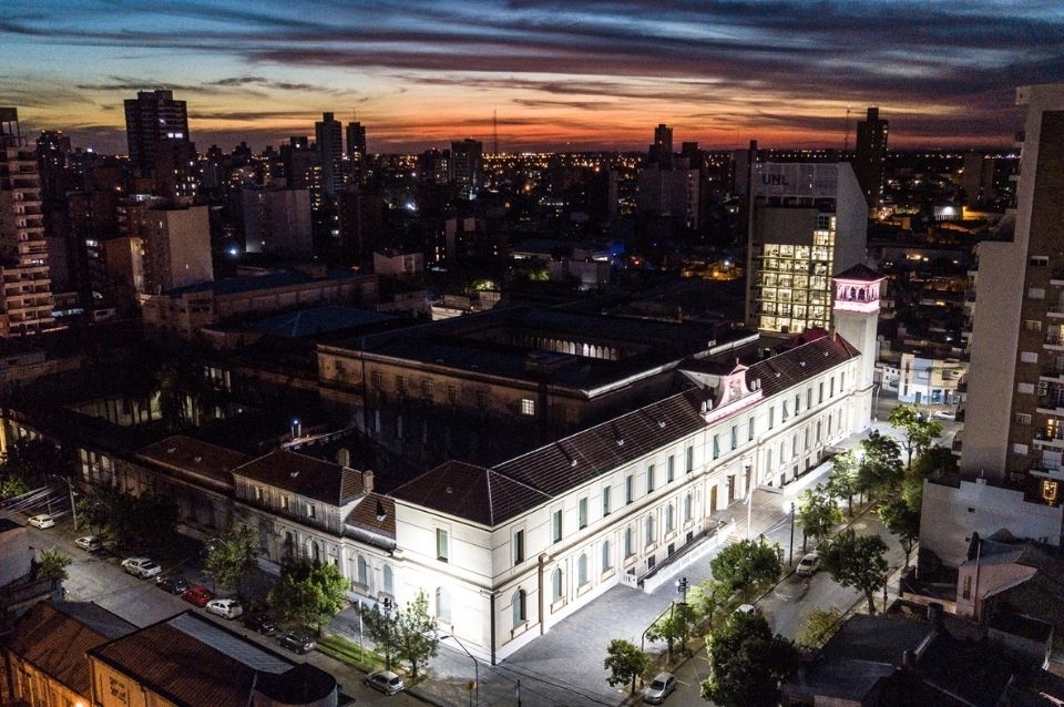 En conmemoración del 447° aniversario de la ciudad de Santa Fe, que se celebra este 15 de noviembre, la Universidad Nacional del Litoral ilumina la Facultad de Ciencias Jurídicas y Sociales. Ubicada en la Manzana Histórica, sobre calle Cándido Pujato, esta fachada ahora luce en todo su esplendor a partir de la culminación de una nueva etapa de la puesta en valor del emblemático edificio que es patrimonio arquitectónico de toda la Argentina.