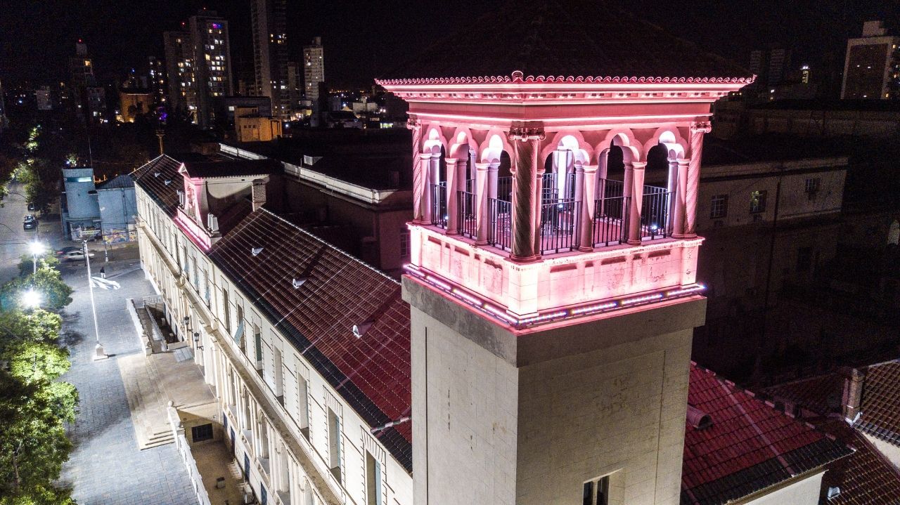 En este sentido, remarcó que “la obra de iluminación de la fachada de Jurídicas muestra en su máximo esplendor las características arquitectónicas del edificio. Por recomendación de la Comisión Nacional de Monumentos, Lugares y Bienes Históricos, se proyectó y ejecutó un sistema de iluminación plana, que resalta los valores pensados por su proyectista, el Arq. Manuel Torres Armengol, con solo algunos destaques particulares en áreas de interés como son los patios ingleses, el pórtico de ingreso, y en particular la Torre Mirador que domina la composición, ubicada en la esquina de Facundo Zuviría y Cándido Pujato”.
