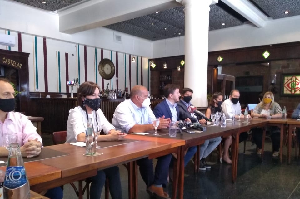 Un grupo de legisladores nacionales, provinciales y concejales de Juntos por el Cambio se reunieron en el Hotel Castelar para manifestar sus críticas al presupuesto nacional y provincial y exigieron que se respete el sistema de las Paso.