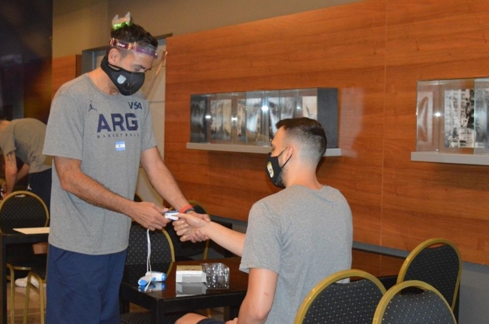 Tras alojarse el viernes, además de ni pisar la vereda, el equipo no se entrenó el sábado y domingo para cuidarse, esperando el okey (de cancha y transporte) de FIBA. “Estamos en la fase llamada ‘de aislamiento relativo’ y el martes entramos en la burbuja hermética de FIBA que estará en el Marriott. Ahí nos ponemos dentro de su protocolo, y luego del tercer PCR, estaremos absolutamente seguros. Pero por ahora nos tenemos que seguir cuidando, esperando ese tercer testeo que elimina toda chance”, informó Sarfati en charla con Prensa CABB. El médico tiene un set de instrumentos digitales, como termómetro infrarrojo y oxímetro de pulso, que permite anticiparse 48 horas a la enfermedad. "Testeamos una vez al día a cada integrante. Medimos la temperatura, la frecuencia cardíaca y la función respiratoria a través de la saturación de oxígeno. Previo a tener Covid-19, estos parámetros se ven alterados y así nos anticipamos a que la enfermedad se desarrolle”, precisó. También hace un estudio clínico de síntomas, siempre buscando síntomas antes de los síntomas del virus.