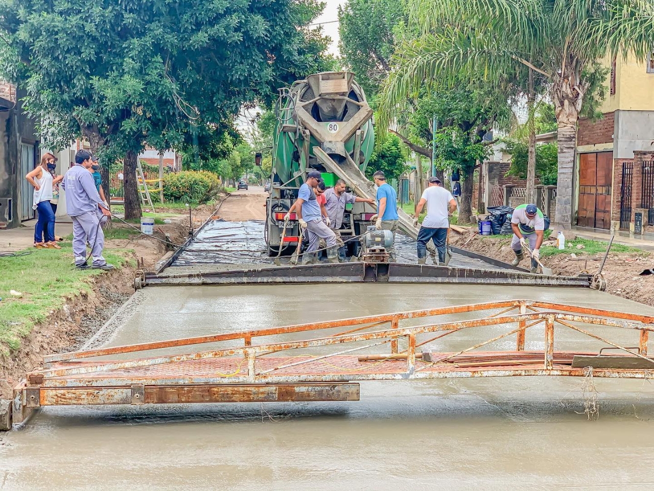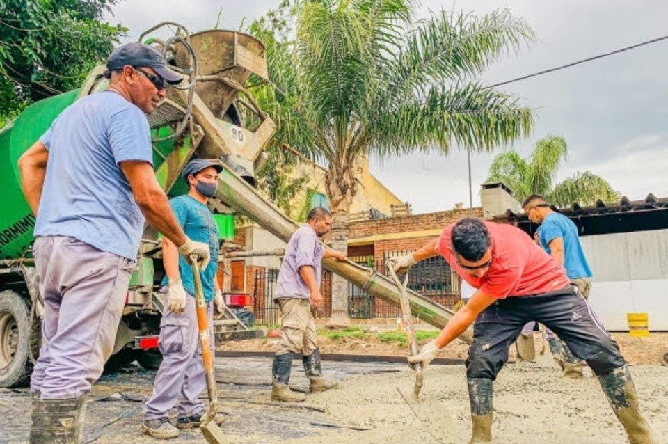El Plan de Pavimentación de 76 Cuadras es ejecutado por personal del Municipio, bajo la modalidad de contribución por mejoras, y contempla la construcción de calzadas de hormigón simple, con un espesor de 15 centímetros, además de obras complementarias de saneamiento hídrico en todas las arterias intervenidas.