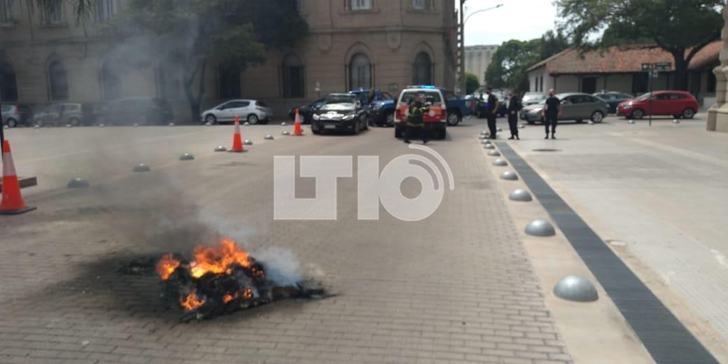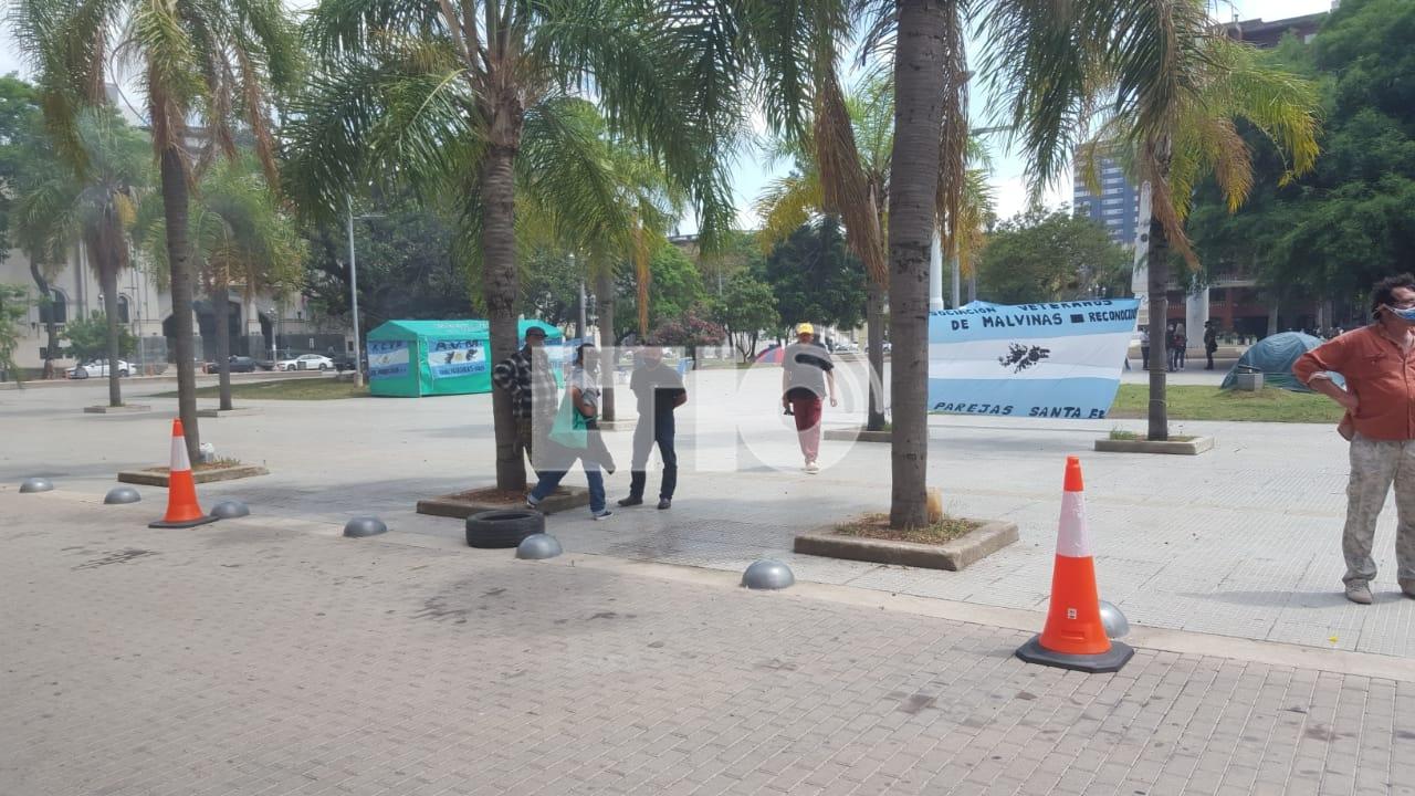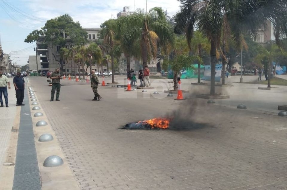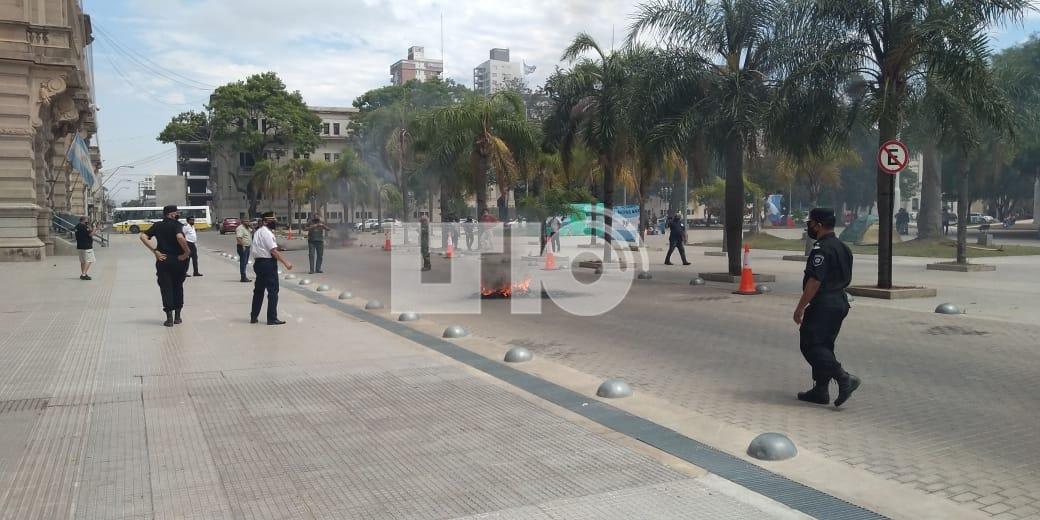 Justamente en este último caso, montaron carpas y colgaron banderas argentinas con leyendas, y prendieron fuego algunos neumáticos en símbolo de propuesta que debieron sofocar los bomberos. Además, cortaron el tránsito en 3 de febrero y San Martín.