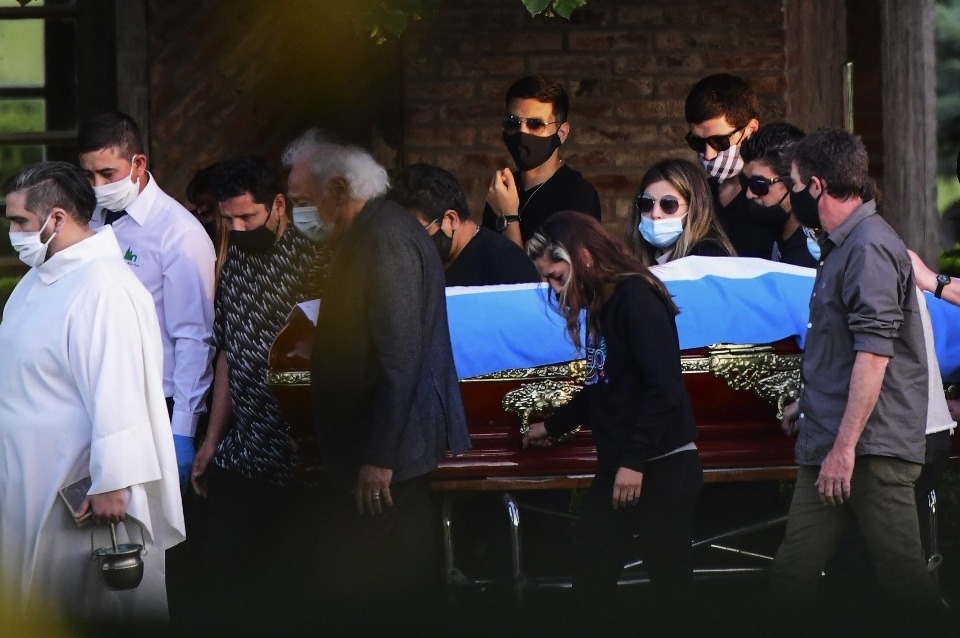 En las primeras horas se llevó adelante una ceremonia privada para su círculo más cercano encabezado por su exesposa Claudia Villafañe y las hijas Dalma y Giannina.