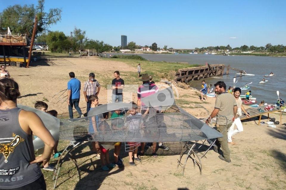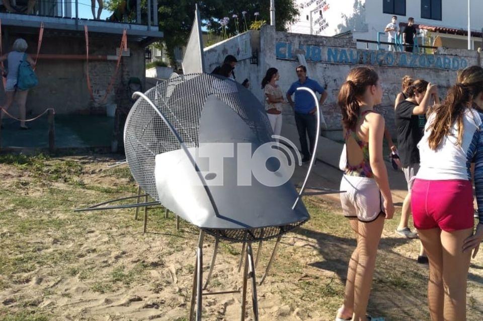 Este viernes el club náutico Azopardo instaló una estructura de hierro con forma de moncholo para que la gente arroje allí los residuos plásticos y se evite así contaminar las aguas.