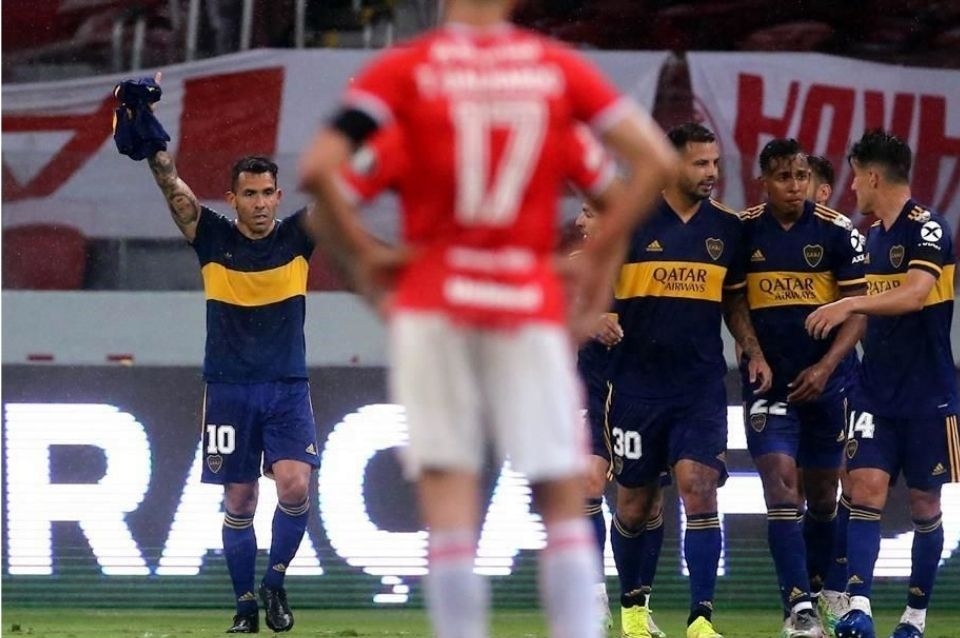 El homenaje de Carlos Tevez a Diego Maradona luego de convertir el gol de la victoria de Boca ante Inter de Porto Alegre por la Copa Libertadores fue de los más emotivos, de los miles, que recibió el Diez y el Apache recibió el agradecimiento de Dalma.