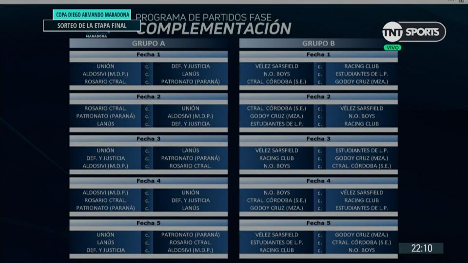 -GRUPO B: Newell's, Central Córdoba (SdE), Godoy Cruz, Estudiantes, Racing y Vélez.