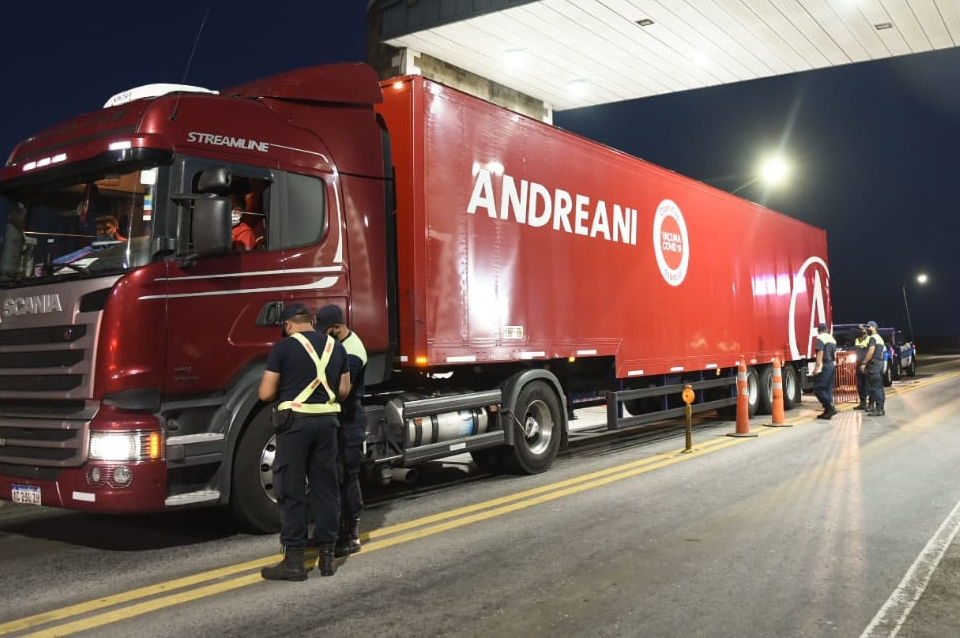 El funcionario expresó “hicimos una evaluación de riesgo junto a Andreani, que aporta la logística. El operativo que llegó hoy a la provincia fue una muy buena prueba de lo que habíamos diseñado. La policía de Seguridad Vial acompañó a los camiones en su recorrido por la provincia. Luego, las unidades regionales hacen su aporte en los centros donde estarán depositados los pack durante algunas horas, refrigeradas obviamente”.