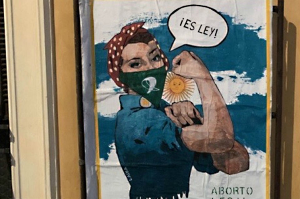 Con fuerte énfasis en mantener su anonimato, Laika es una de las más reconocidas artistas callejeras de Italia y esta vez dedicó una versión propia del famosos poster "We can do it", de la Segunda Guerra Mundial, dedicado a la aprobación de la ley de aborto en Argentina.