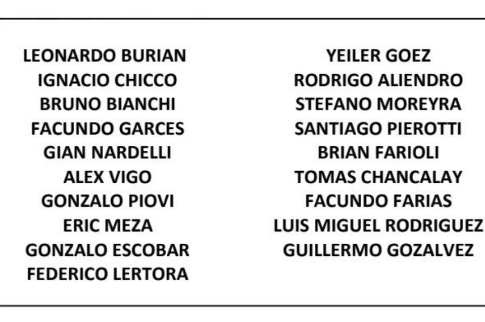 Tampoco estará en la nómina Tomás Sandoval, quien a pesar de haber dado negativo en el examen de coronavirus presenta síntomas similares al mismo, con lo cual quedó desafectado.