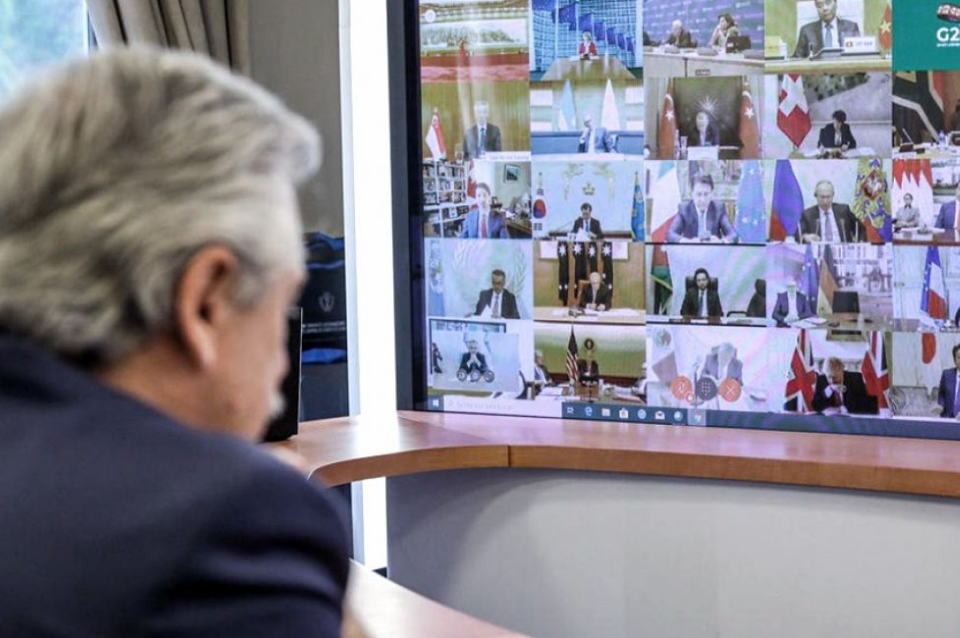 Desde la Residencia de Olivos, el mandatario participa acompañado por el jefe de Gabinete, Santiago Cafiero; el ministro de Interior, Eduardo de Pedro; y la secretaria de Acceso a la Salud, Carla Vizzotti
