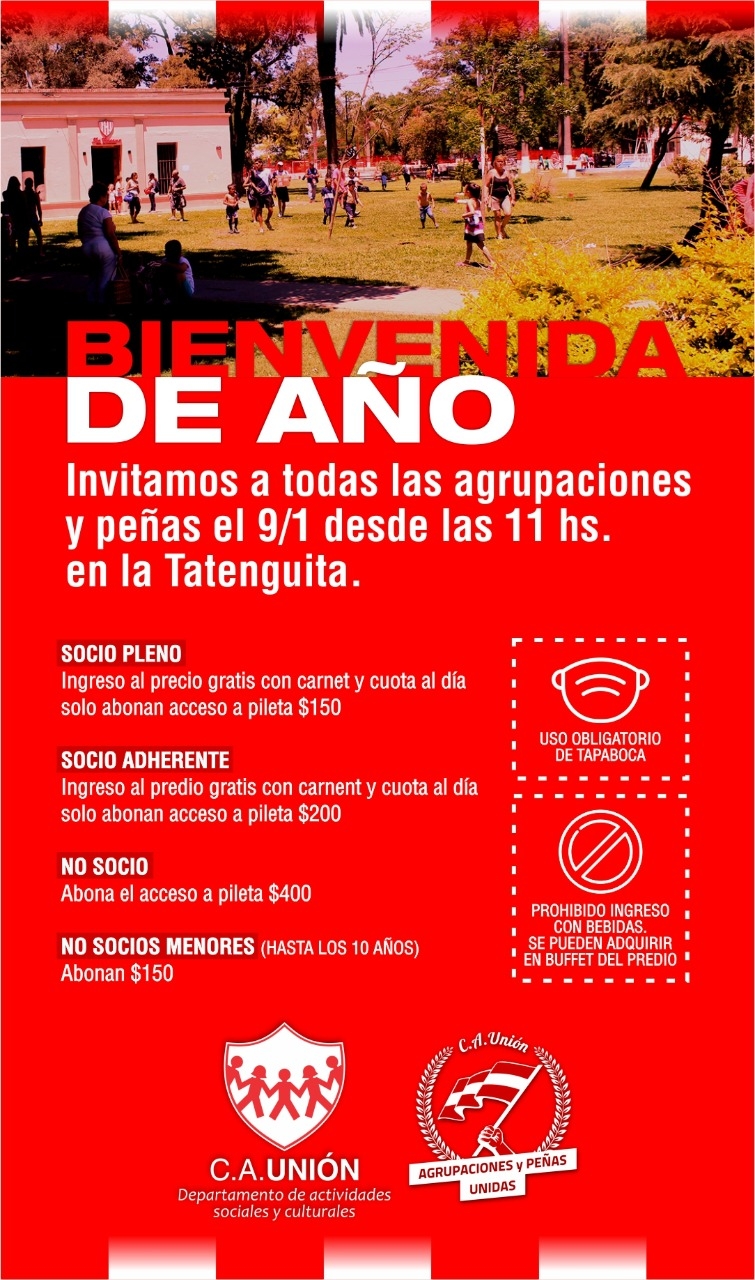 El departamento de actividades sociales y culturales de Unión realizó una invitación a todas las agrupaciones y peñas para realizar la "Bienvenida de año" que tendrá lugar en La Tatenguita.