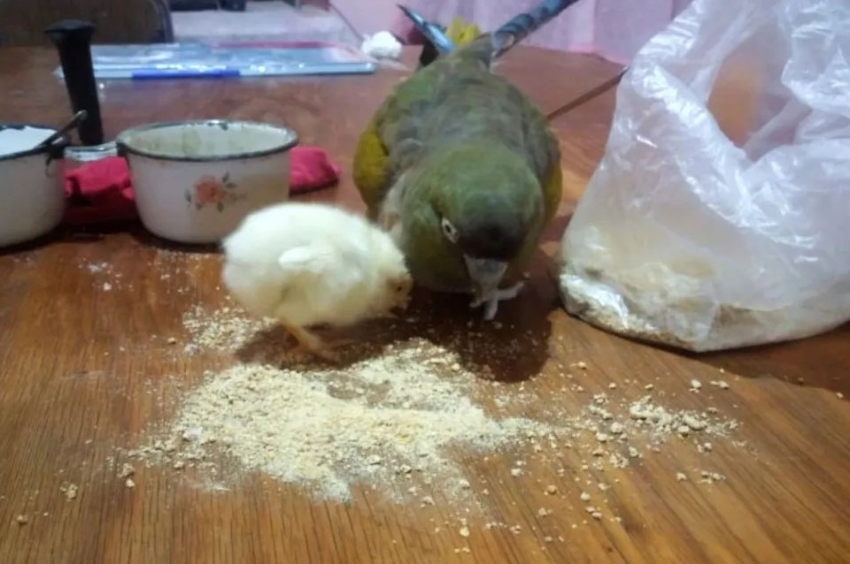 "La lora de una conocida de mi vieja le afanó un huevo a una gallina, lo empolló y ahora está criando al pollito como si fuera suyo", anunció en mayúsculas la usuaria Meri en Twitter. Con semejante titular no es de extrañarse que haya captado la atención de sus seguidores, pero luego su posteo se volvió viral por las tiernas fotos los animales juntos, como padre putativo e hijo adoptivo.