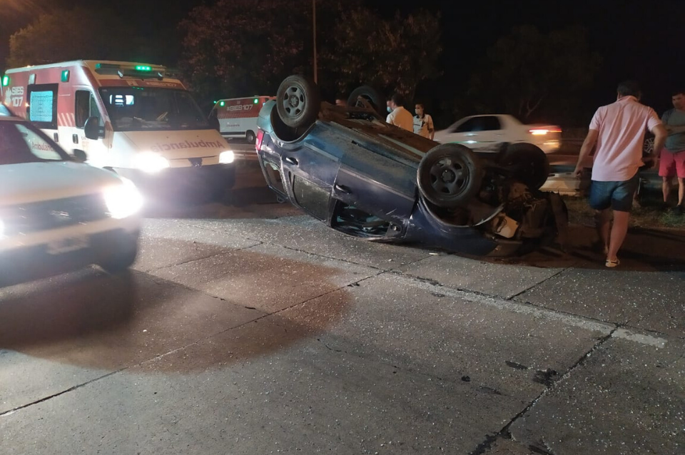 Allí, una camioneta marca Ford Eco Sport volcó y terminó completamente invertida sobre la carpeta asfáltica. Dentro del vehículo iba un joven de 19 años, que logró salir por sus propios medios, mientras que personal del servicio SIES 107 debieron atender y trasladar a un hombre mayor, padre del joven a un centro médico para ser atendido.