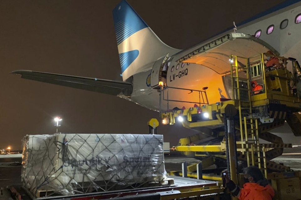 Comenzó el proceso de carga de las 300 mil vacunas Sputnik V. #AerolíneaDeBandera pic.twitter.com/lzdlA9vfOf