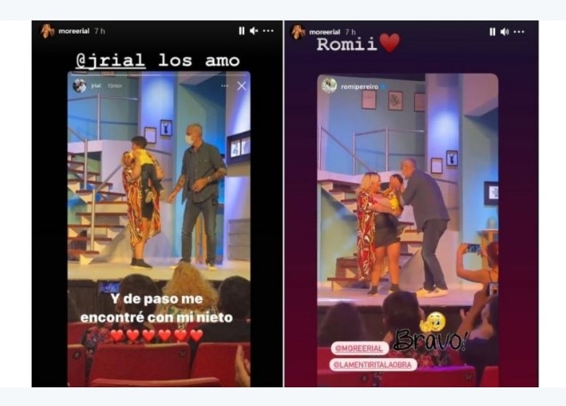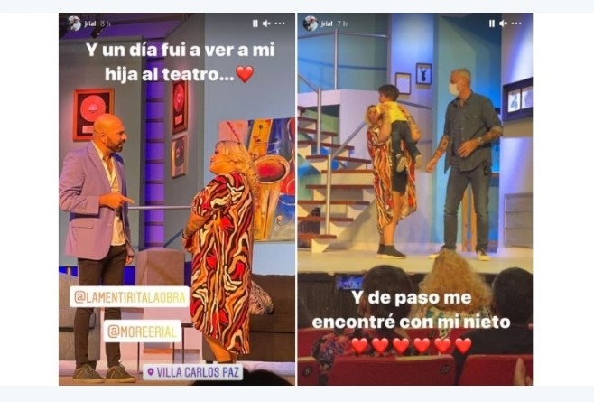 "Y un día fui a ver a mi hija al teatro...", contó Jorge en sus historias, sobre una foto que muestra a Morena en una escena junto a Fredy. "Y de paso me encontré con mi nieto", añadió el conductor, quien llevaba semanas sin ver al hijo fruto de la relación entre Morena y Facundo Ambrosioni luego de que estos viajaran a Córdoba.