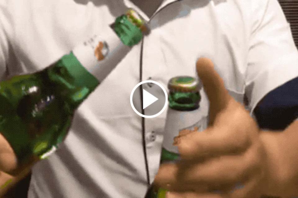 En el video que subió y que se viralizó rápidamente, se lo puede ver golpeando alrededor del pico del envase hasta lograr que se forme espuma en la punta. Luego de unos segundos, la chapa salió de forma automática sin necesidad de usar un destapador.