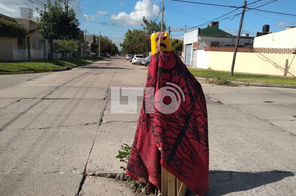 El diálogo con LT10, uno de los vecinos destacó que "ya no saben como señalizarlo" y se les ocurrió esa idea. Siguiendo con el relato dijo que "los autos y colectivos a veces pasan a gran velocidad y si no lo ven dañan las cubiertas ya que es un pozo muy profundo" y con el pavimento corta los neumáticos. Además explicaron que es muy peligroso ya que en algunas ocasiones el canto rodado que está suelto sale disparado hacia las viviendas.