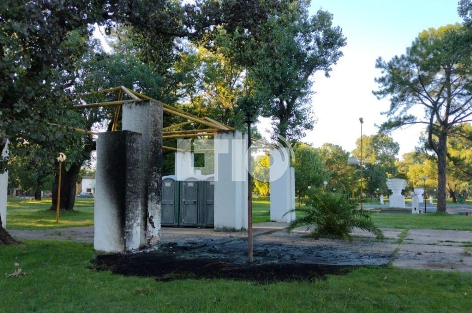 Durante la madrugada, desconocidos quemaron tres baños químicos que la municipalidad ubicó en el Parque Garay, a metros de la casa de las Mascotas.