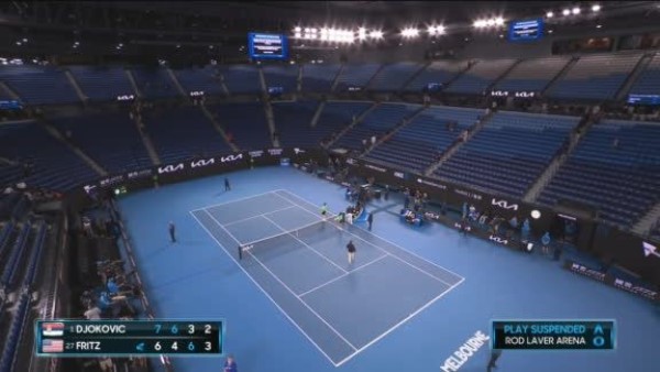 Llegada la medianoche, los simpatizantes tuvieron que abandonar la cancha cuando el serbio tenía una ventaja de 7-6 (1), 6-4, 3-6 y 3-2. Finalmente, el número 1 del mundo se impuso por 7-6 (1), 6-4, 3-6, 4-6 y 6-2. El juego terminó a las 00.21 del sábado, ya con la ciudad aislada. "Es una lástima que el público no haya podido quedarse en la cancha hasta el final", lamentó el serbio.