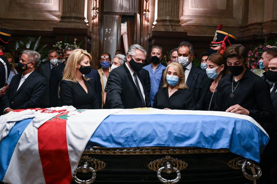 Minutos más tarde arribaron al lugar para despedir a quien fuera presidente en la mayor parte de la década de los ´90 varios dirigentes como el actual mandatario, Alberto Fernández; Eduardo Duhalde, ex presidente, y el titular de la Cámara de Diputados, Sergio Massa, y su esposa, quien está a cargo de la empresa estatal AySA, Malena Galmarini.