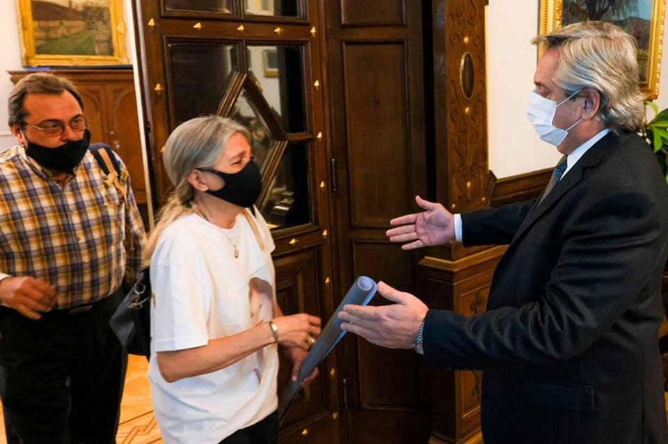 "Fuimos muy bien recibidos, Alberto Fernández me trató muy bien como mamá, me voy contenta con el encuentro y lo que prometió el Presidente", aseguró la madre de Úrsula a los periodistas al salir de la reunión.