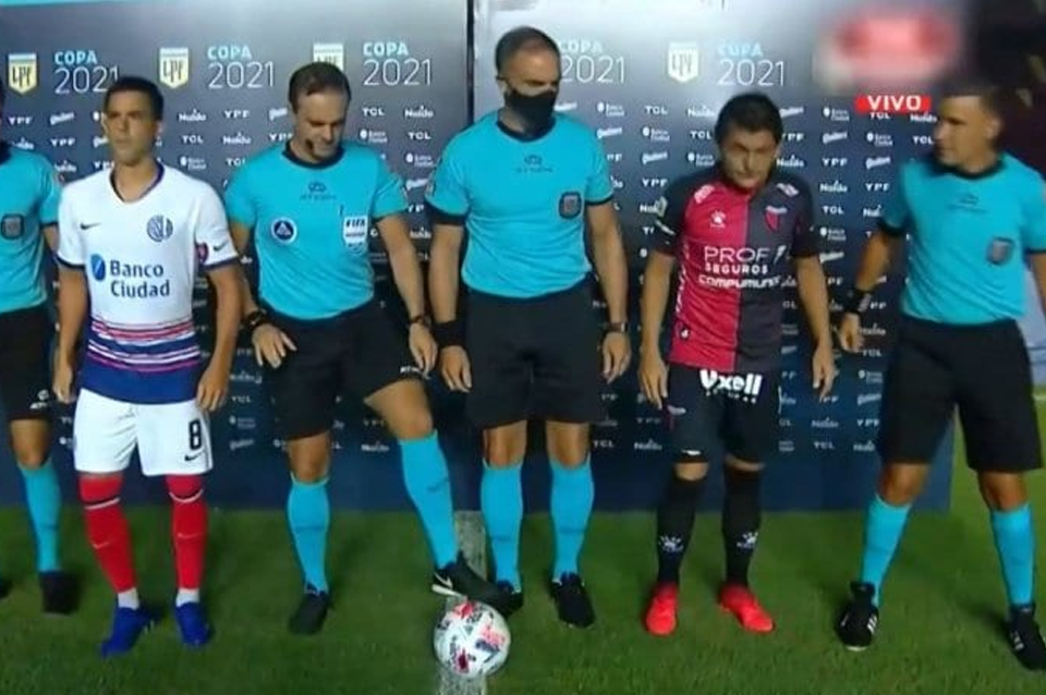 Patricio Loustau, árbitro del encuentro, entró al campo de juego del Cementerio de los Elefantes muy concentrado y así lo dejó claro en el sorteo previo que lo tuvo como protagonista junto al Pulga Rodríguez, delantero del Sabalero, y Diego Rodríguez, mediocampista del Ciclón.