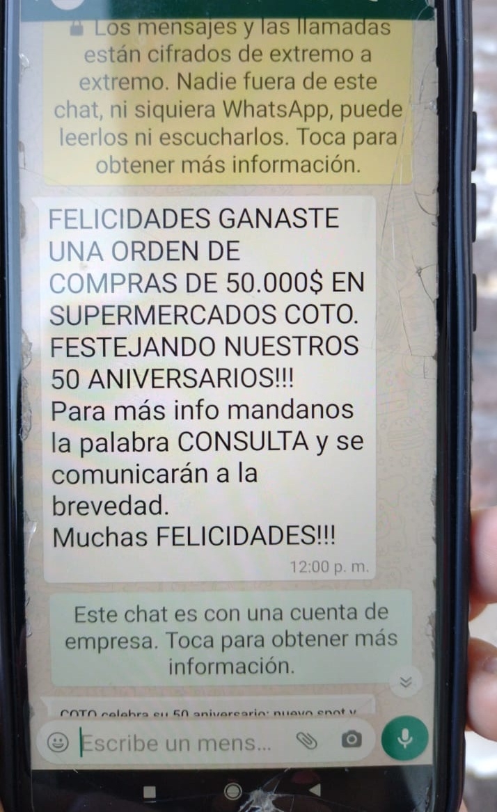 Tres personas denunciaron durante la jornada del martes y los primeros minutos de este miércoles, que recibieron llamados telefónicos donde se les comunicaban que habían ganado un premio del supermercado Coto por un monto de 50 mil pesos (en una orden de compra), que los hicieron ir hasta un cajero automático y tras entregar sin darse cuenta algunas claves, les sacaron préstamos y los giraron a otras cuentas bancarias.