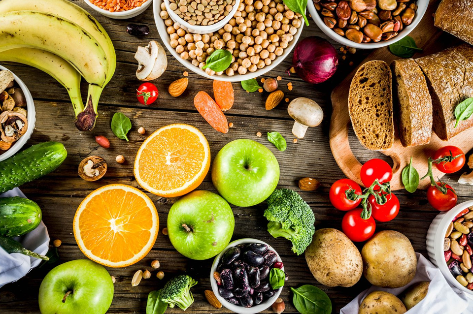 Frutas, verduras y legumbres: proporcionan vitaminas, minerales, fibra dietética y nutrientes. La mayoría son bajas en calorías y pueden ayudarte a sentirse satisfecho por más tiempo.