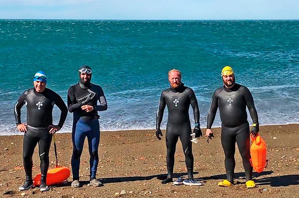 Julio Gaitán, Héctor Guittard, Pablo Pera y el entrenador del grupo Master del Celeste santacruceño, Alejandro Amuchástegui, iniciarán este sábado desde las 8, en el Lago Argentino, la travesía planificada en cuatro etapas de 100 kilómetros diarios. Tienen previsto nadar un promedio de 10 horas por día, hasta el 2 de marzo inclusive, con temperaturas de entre 7 y 9 grados por el origen glaciar de las aguas, hasta los 12 grados.