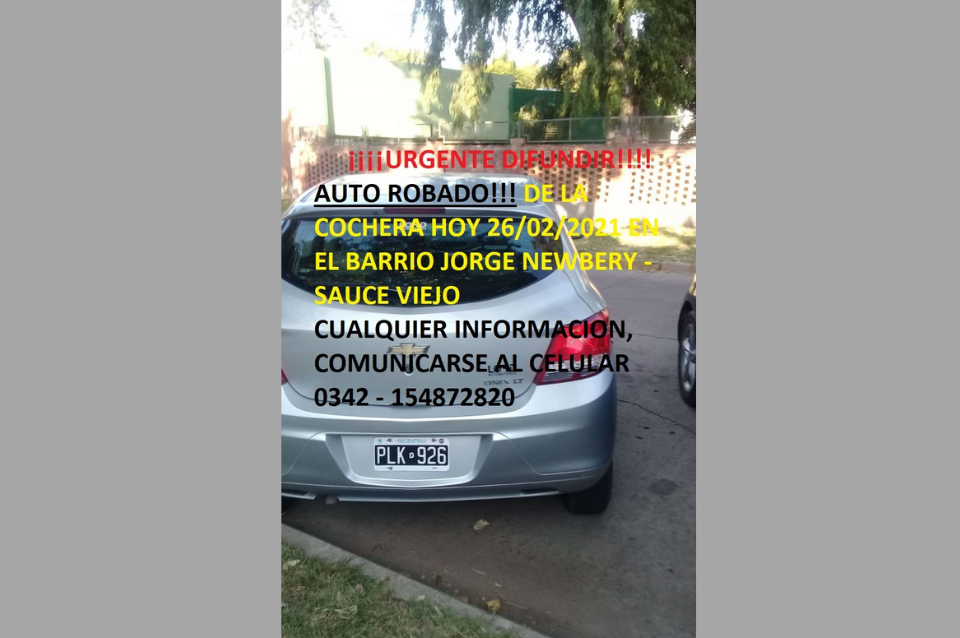“Nos levantamos, nos fijamos y no estaba. Es un Chevrolet Ónix color gris patente PLK 926. Ya hicimos la denuncia a la policía. Ahora también vemos que nos falta una lijadora eléctrica y han forzado unas rejas de una puerta ventana que está en el patio” agregó Mónica.