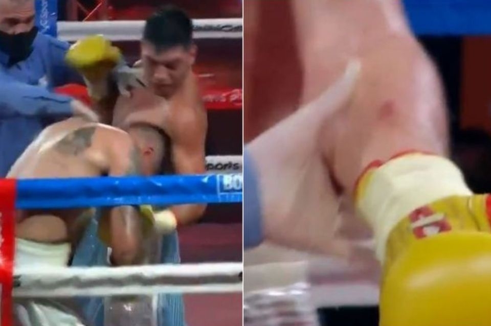 Con firmeza, el árbitro de la pelea se acercó a los jurados y comunicó su decisión de descalificar a Díaz, quien recibió la noticia con sorpresa en su esquina.