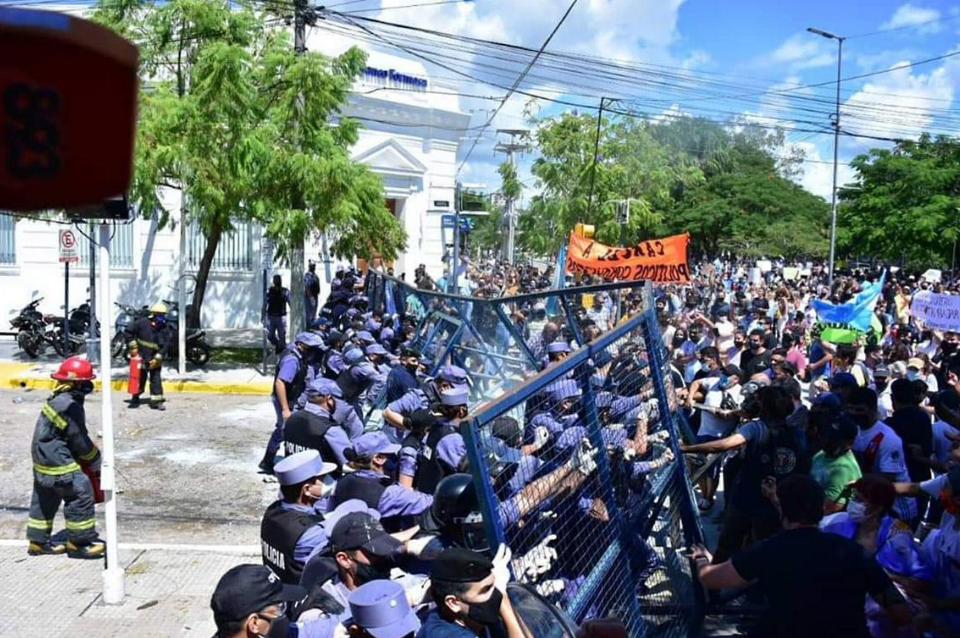 Luego de que los vecinos salieran a las calles, se produjeron algunos enfrentamientos con la Policía de Formosa, que reprimió a los manifestantes con balas de goma y gases lacrimógenos y dispuso vallados en inmediaciones de la Casa de Gobierno local.