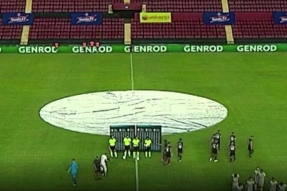El juez principal del encuentro entre el Sabalero y Aldosivi en Santa Fe esperaba al delantero rojinegro, que se dirigía a saludar al equipo de réferis en el centro del campo de juego. Allí aprovechó Herrera para hacer su intento, pero la pelota no pasó entre las piernas del jugador. ¿Habrá otro pito que vaya por el desquite?