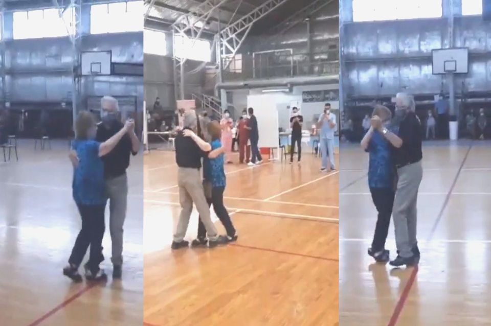 En el clip se puede ver cómo la pareja, con más de cinco décadas de casada, y que forma parte del proceso de vacunación contra el Covid-19 para personas mayores de 70 años, se pone a bailar un vals previo a recibir la inmunización.