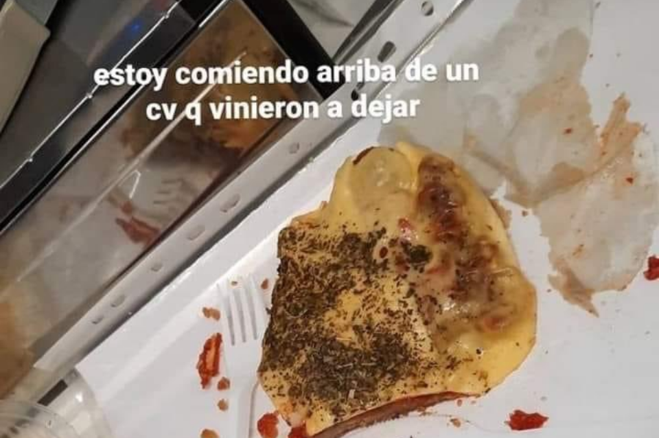 En la foto se veía una porción de milanesa napolitana a medio comer ubicada sobre un folio con una hoja blanca en su interior que ya estaba completamente cubierta de aceite. La joven pensó que esto era divertido y lo publicó junto a la frase: "Estoy comiendo arriba de un CV que vinieron a dejar".