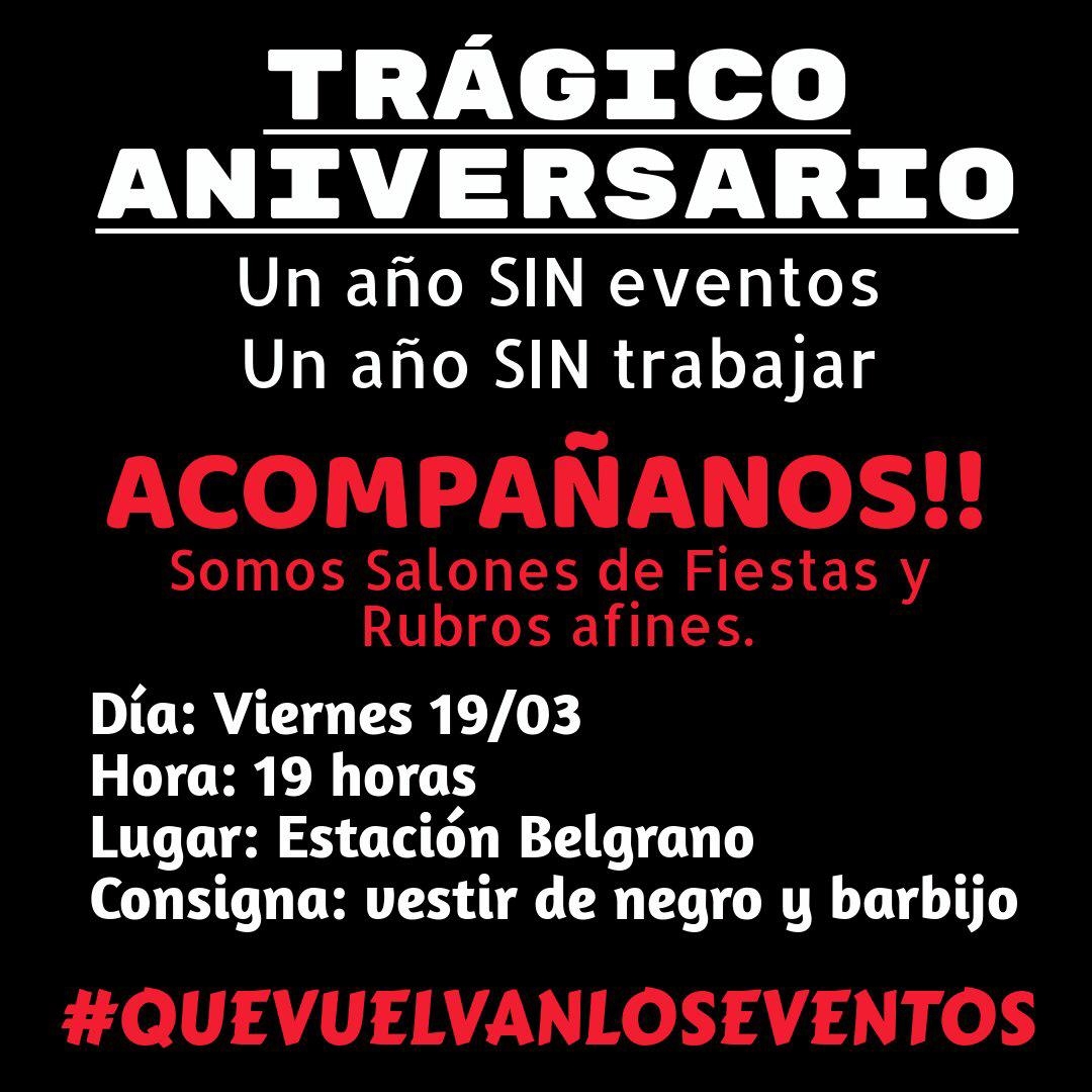 "Cumplimos un año sin poder trabajar, invitamos a medios de prensa, y todos aquellos miles de afectados por este párate (deco, shows temáticos, repostería, enseres, DJ, fotógrafos, distribuidores, etc) a visibilizar está problemática" dice el comunicado que están haciendo circular por las redes sociales.