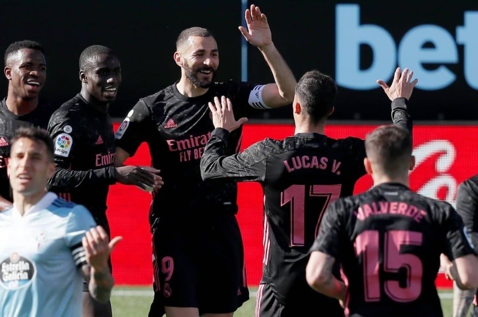 El delantero francés Karim Benzema anotó en dos ocasiones, a los 20m. y 30m. del primer tiempo, y asistió a Asencio (48m. ST), mientras que enfrente descontó el español Santi Mina, a los 40m. PT.