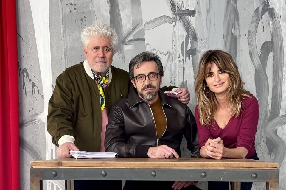 En la primera foto tomada en el set, posada, aparece el director con dos de sus protagonistas: Israel Elejalde y una de sus actrices fetiche, Penélope Cruz.